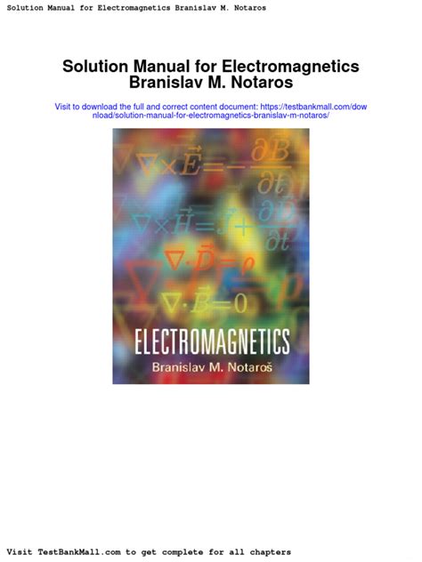 Download online ELECTROMAGNETICS BRANISLAV M NOTAROS SOLUTION MANUAL PDF Gutenberg